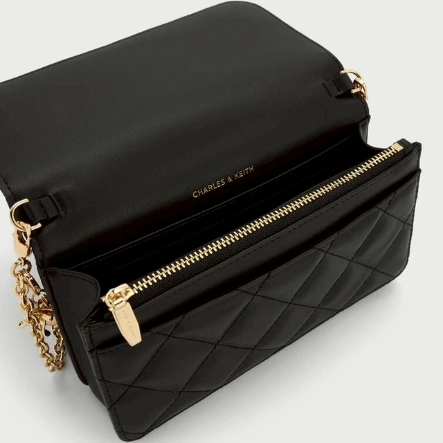 【CHARLES & KEITH】Paffuto 菱格鍊條長夾|時髦通勤必備|快速出貨