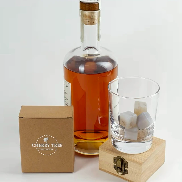 歡慶感恩節 | 威士忌4合一精緻質感木盒禮盒 (威士忌玻璃杯 2 件組 波本威士忌杯 |6顆花崗岩冰涼岩 |花崗岩收納盤 |夾子) 最佳喬遷之禮 交換禮物 最佳禮品 最佳飲酒禮品