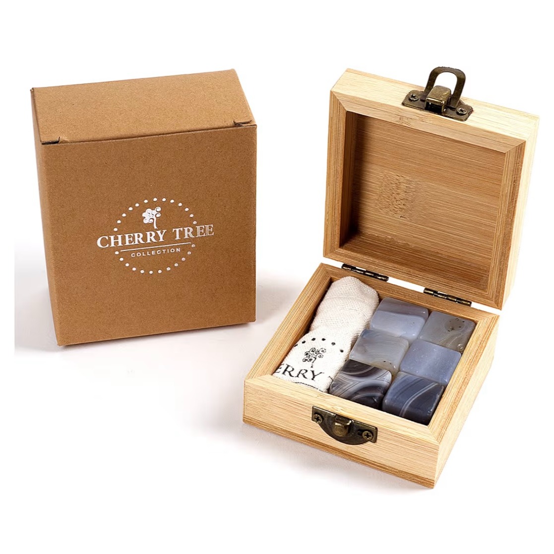 【GOFANA】WhiskeySet|Charred 木製波本威士忌木盒禮盒組 / 木製酒杯x2、不銹鋼冰石x6、杯墊x2、冰鉗x1、收納袋x1 喬遷之禮 質感禮品 酒品