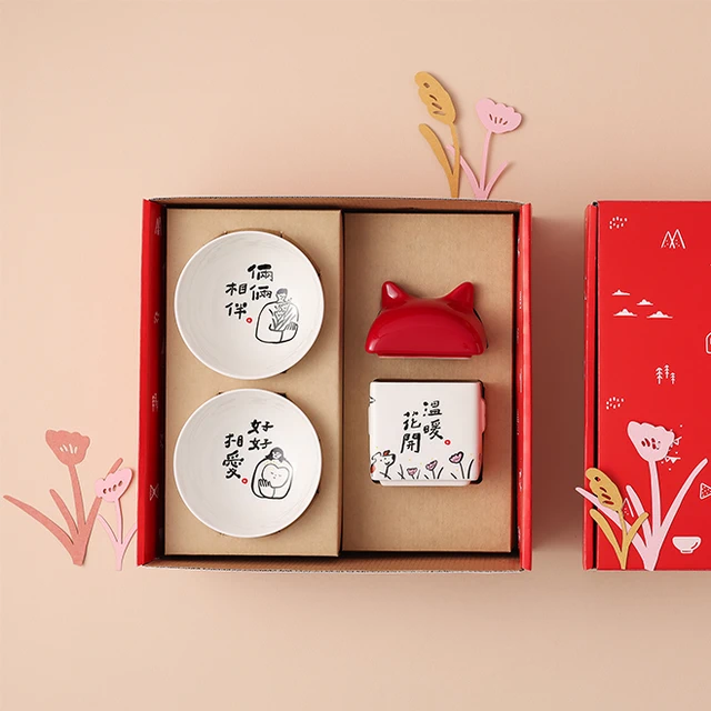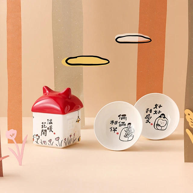 【Mao's樂陶陶】厝內倆倆相愛 雙碗醬油碟禮盒組 | 奇亞子聯名 | 結婚 | 入厝禮物