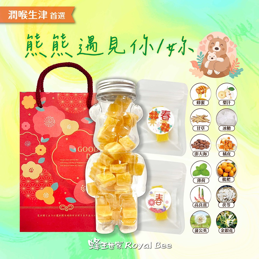 歡度聖誕【蜂王世家】金嗓蜂梨潤喉糖-伴手禮組合|清涼甘甜|金嗓蜂梨小熊+2包3顆裝+送禮提袋|潤喉糖|硬糖|團購熱銷好評|聖誕節|交換禮物|送禮首選