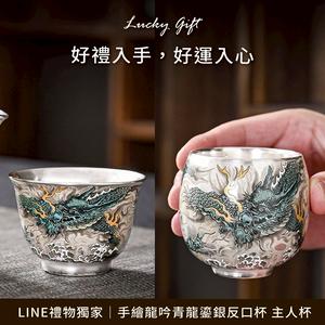 [快速出貨]【BRAVOMART HOME】青龍鎏銀茶杯 反口杯 茶盞 升遷禮 商務送禮 水瓶座 雙魚座 禮物獨家 新品上市 入厝禮