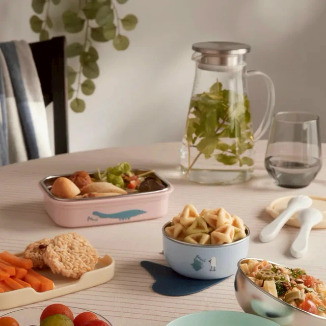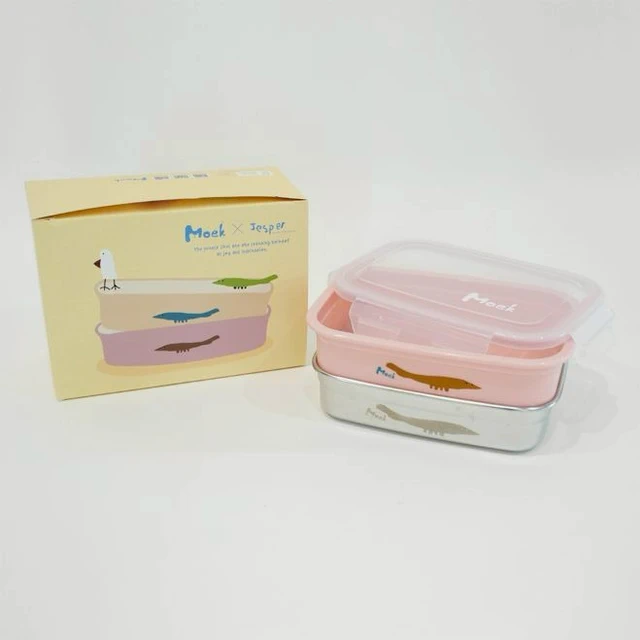 手作便當健康吃【Moek X Jesper】雙層抗菌可微波不鏽鋼餐盒 - 含矽膠上蓋 (共2色可選) 寶貝的聖誕禮物 兒童餐具 吃飯 副食品 點心 便當 雙盒雙用 輕便好清潔