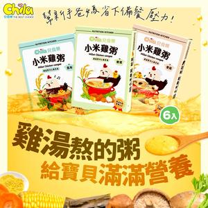 ⚡快速出貨|送新手爸媽最需要的♥【Chila兒食樂】小米雞粥綜合3盒組(共6包)|常溫雞湯寶寶粥・6M寶寶副食品首選・台灣品牌(香菇+野菜+昆布)