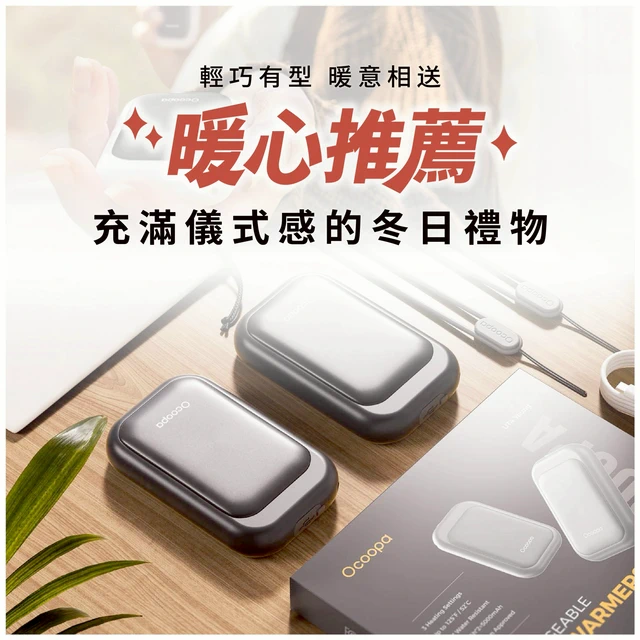 【億肯嚴選】Ocoopa暖手蛋貼心不落組-輕巧美型款+可調式編織掛繩快充線