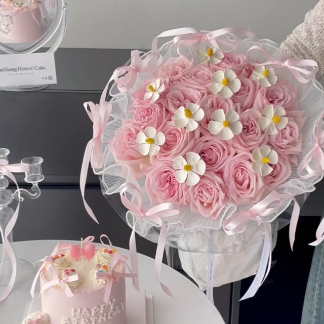 預購【LAMIE】旗袍風粉色b款珍珠康乃馨 花束 盆花 情人節 閨密 手捧花 花束禮 捧花禮