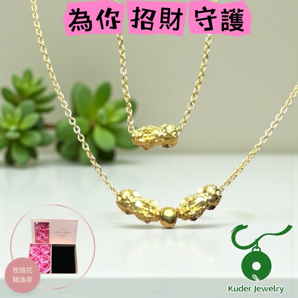 [快速出貨]【Kuder Jewelry】黃金上身富貴加分~1+1愛的串連項鍊『LINE禮物獨家組合』買黃金項鍊送愛馬橙玫瑰花束香氛大禮盒一件