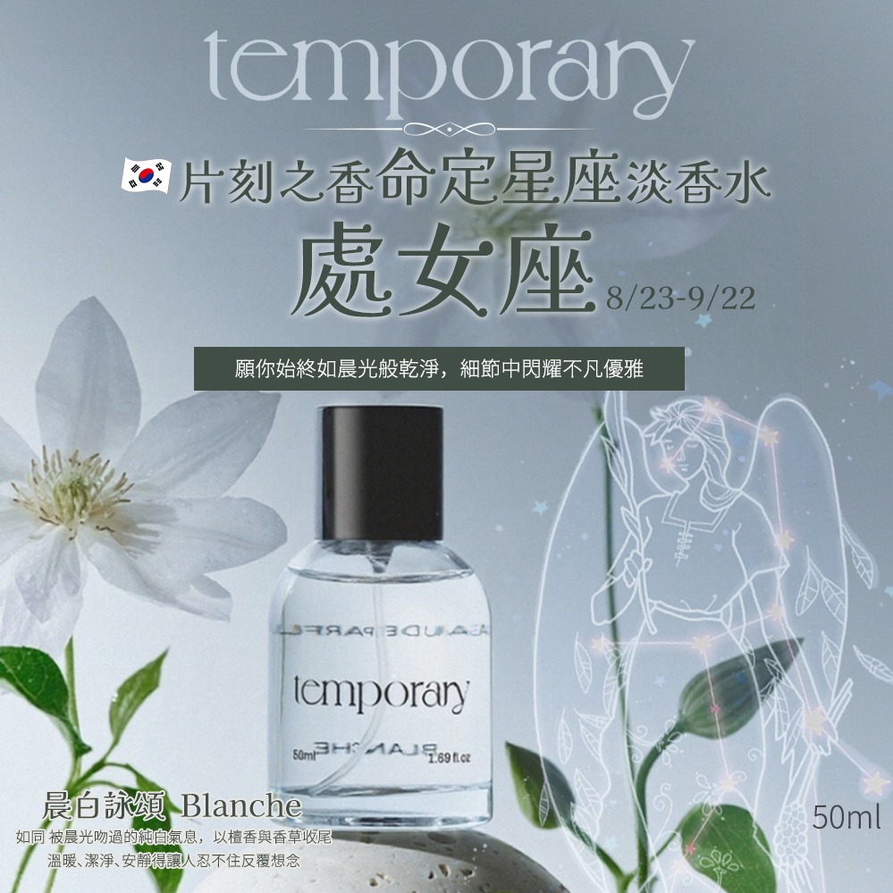 【今日香氛研究所 】💎韓系香水💎韓國Temporary片刻之香淡香水-晨白詠頌 Blanche 50ml|被晨光吻過的純白氣息 花香與粉感輕柔展開,以檀香與香草收尾