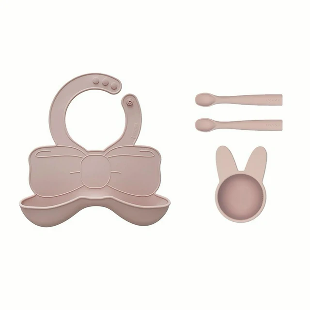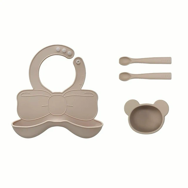 【預購】寶寶餐具組【寶寶市集】寶寶市集 超強吸盤兒童矽膠餐盤/白金矽膠餐盤 寶寶餐具套組9件組 - 米色