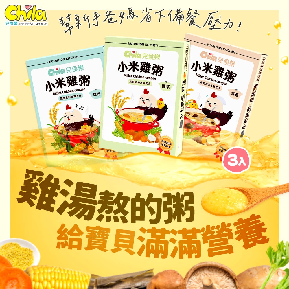 ⚡快速出貨|大份量寶寶主食♥【Chila兒食樂】小米雞粥綜合6盒組(共12包)|常溫雞湯寶寶粥・6M寶寶副食品首選・台灣品牌(香菇+野菜+昆布)