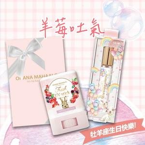 【羊莓吐氣】牡羊座生日快樂 | 莓果兔兔 絲滑白雪防曬棒15g+日暖洋洋 淡香水筆10ml+粉紅禮物盒(小) 快速出貨