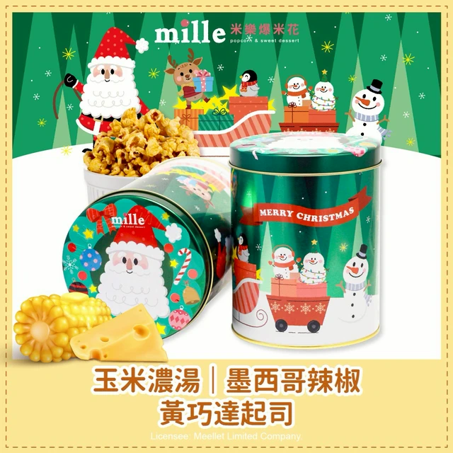【米樂繽紛爆米花】綠老人聖誕雪橇罐爆米花