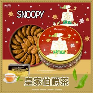 【米樂繽紛爆米花】曲奇餅史努比綠花圈聖誕罐