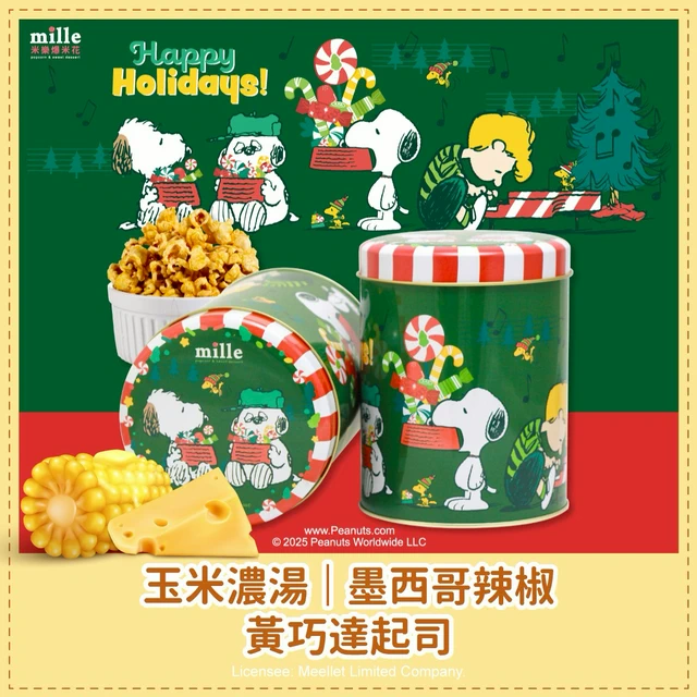 【米樂繽紛爆米花】曲奇餅史努比綠糖果聖誕罐