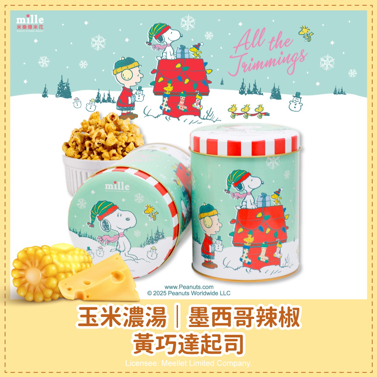 【米樂繽紛爆米花】曲奇餅史努比粉帽雪地罐