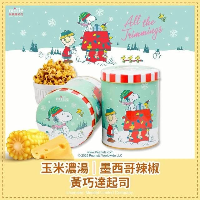 【米樂繽紛爆米花】曲奇餅史努比綠糖果聖誕罐