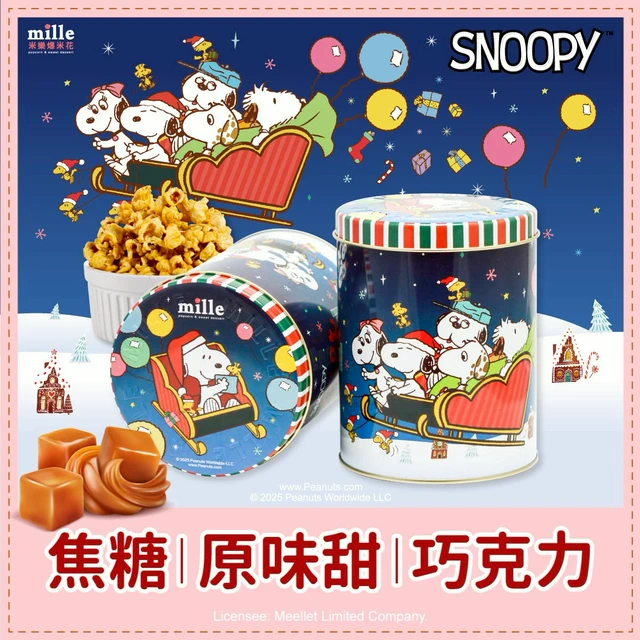 【米樂繽紛爆米花】曲奇餅史努比粉帽雪地罐
