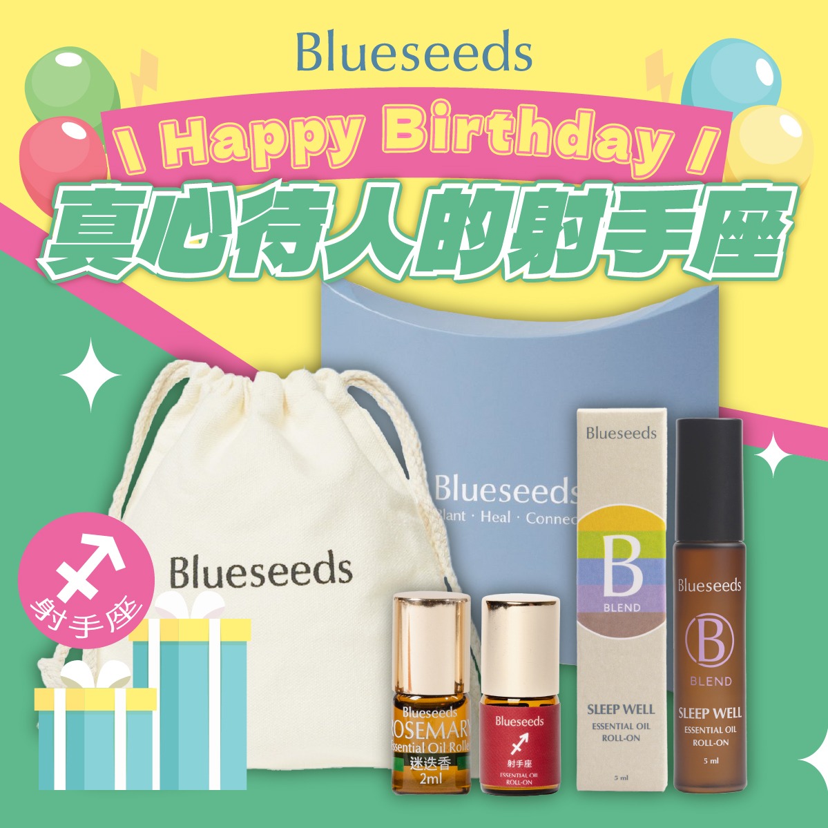 快速出貨【Blueseeds】天蠍座生日快樂 l 獻給天蠍座最實用的禮物 l 迷迭香滾珠精油2ml+天蠍座滾珠精油2ml+茉莉精油露5ml l 芙彤園