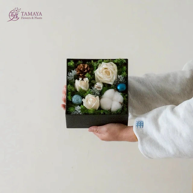 如星光般閃耀【玉屋 TAMAYA】群青|雪球小桌花 卡片印製 送好友 閨蜜 聖誕快樂 聖誕花禮 聖誕佈置 聖誕限定 雪松 居家擺飾 增添聖誕氛圍