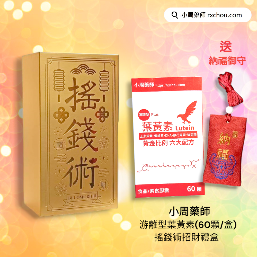 [金搖錢術]【小周藥師】游離型複方葉黃素素食膠囊(60顆/盒)+贈成功御守 禮物盒