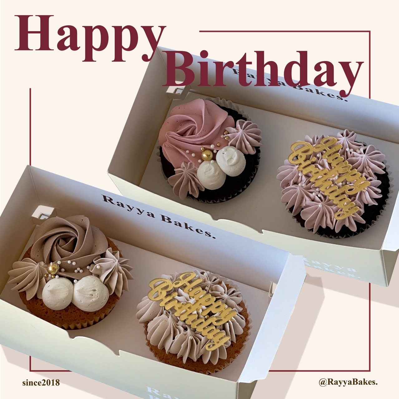 【Rayya Bakes】【2入】奶茶色生日杯子蛋糕/一人一顆剛剛好/生日蛋糕推薦