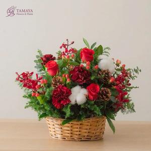 誕願幸福恆長久【玉屋 TAMAYA】赤紅|燭雪花籃 卡片印製 送親友 家人 聖誕快樂 聖誕花禮 聖誕佈置 松果 聖誕限定 餐桌裝飾 增添聖誕氛圍
