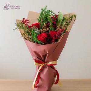 點亮冬日微光【玉屋 TAMAYA】赤紅|冬日雪趣花束 卡片印製 送情人 閨蜜 聖誕快樂 聖誕花禮 聖誕限定 居家裝飾 增添聖誕氛圍