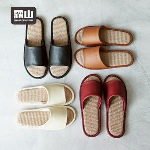 和風皮質透氣亞麻底防滑室內拖鞋-多款可選