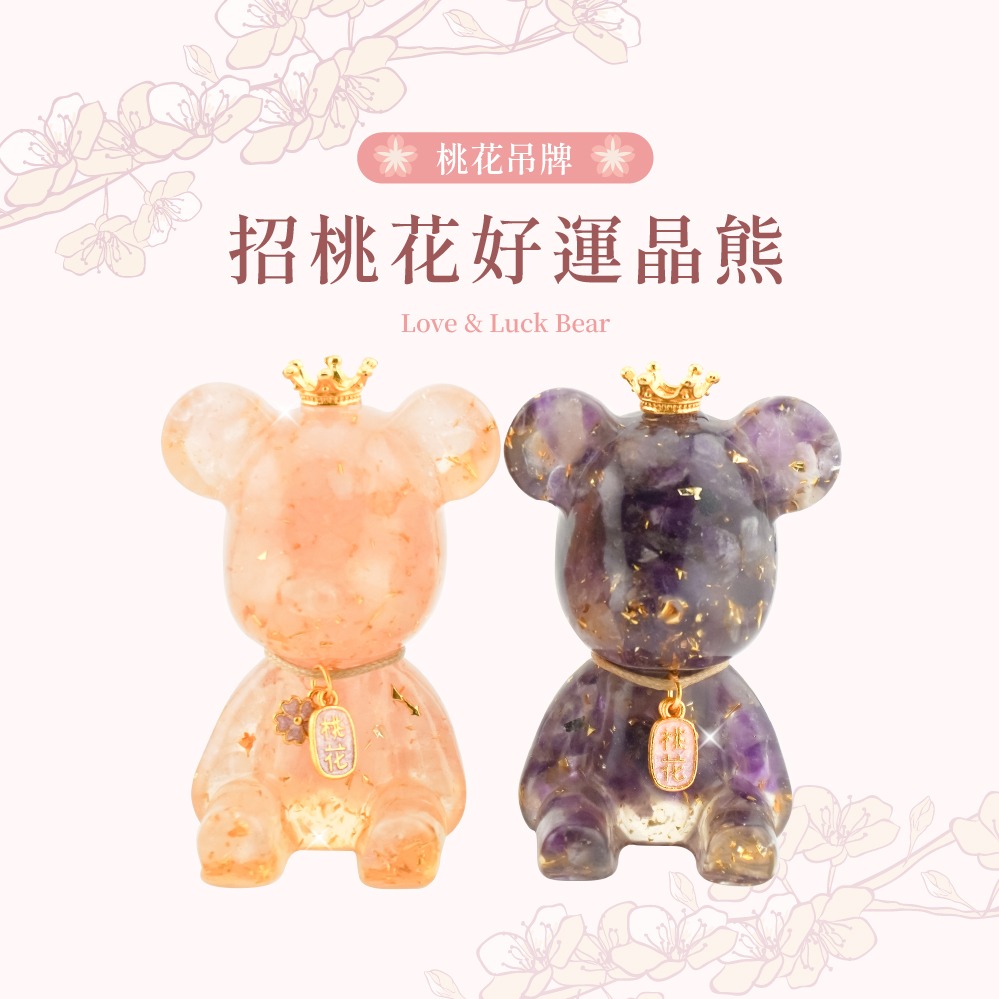 Hourrae荷萊 雙入招財好運晶熊 招財吊牌 一桶金 木座組 開店禮 生日禮 水晶擺件