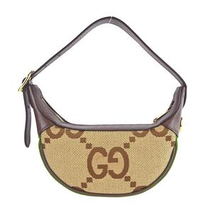 [平輸版]GUCCI Jumbo GG 帆布印花皮革飾邊半月手提/肩背包(烏木色)真品平輸