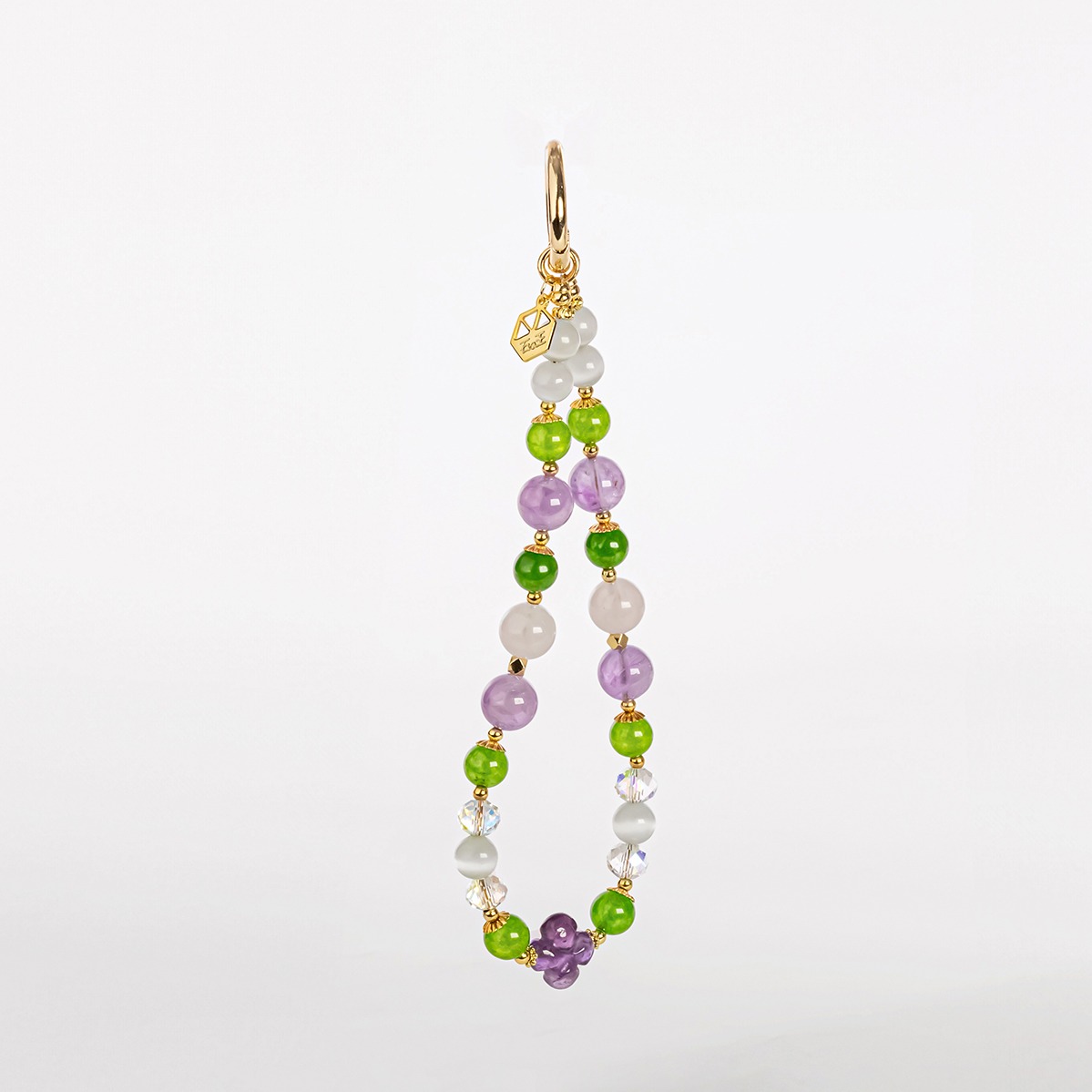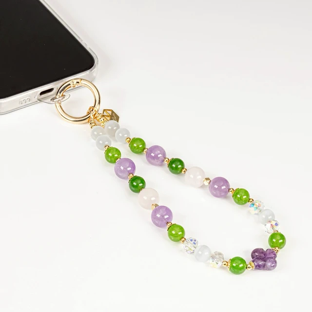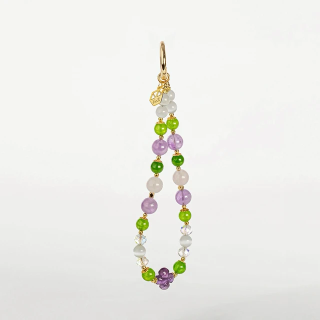 [快速出貨]【石之王】【手機鍊】捕夢守護 | 紫 (彩花琉璃珠/玉髓/草莓晶/奧地利水晶)