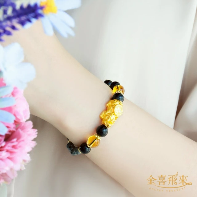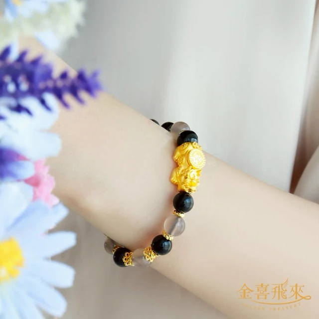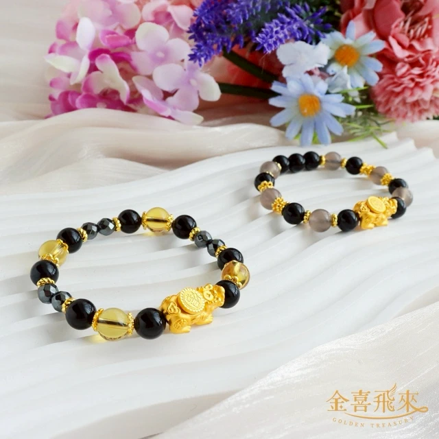 【金喜飛來】黃金手鍊招財貔貅金閃閃串珠多選(0.08錢±0.02)【快速出貨】