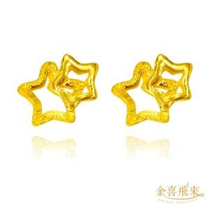 【金喜飛來】黃金耳環雙星奇緣款一對(0.29錢±0.02) 【快速出貨】