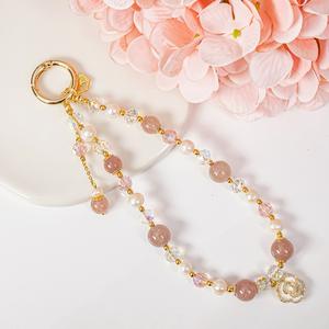 [快速出貨]【石之王】【手機鍊】愛戀山茶 | 草莓晶/珍珠/奧地利水晶