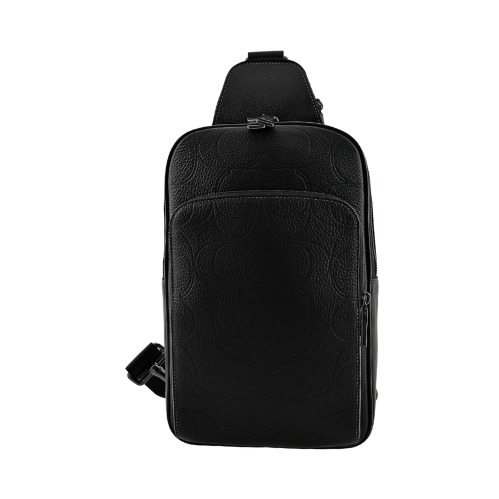 [平輸版] 【COACH】黑色荔枝紋皮革直式單肩後背胸包男包 真品平輸