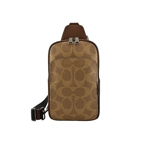 [平輸版] 【COACH】象牙色素面皮革前口袋小款單肩胸背斜後背男包 真品平輸