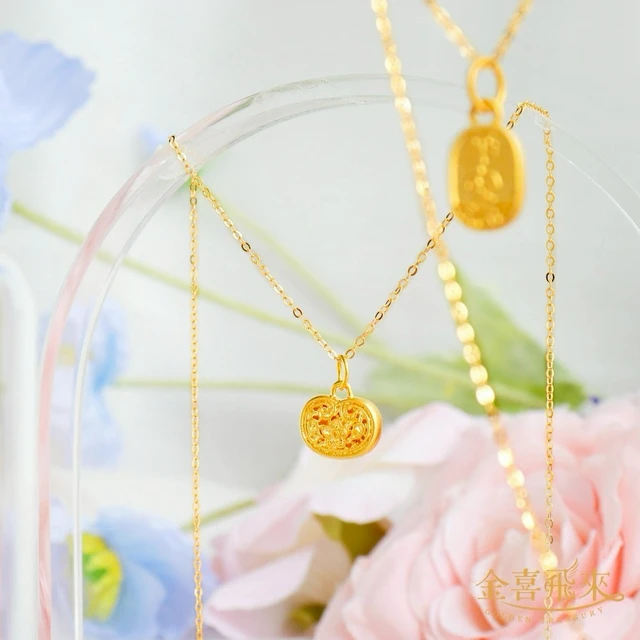 【快速出貨】【TLH】黃金墜OT項鍊 純金999 釦出幸福 約重0.03錢±0.01 (生日(獅子座) 情人節 希望 幸運 祝福)