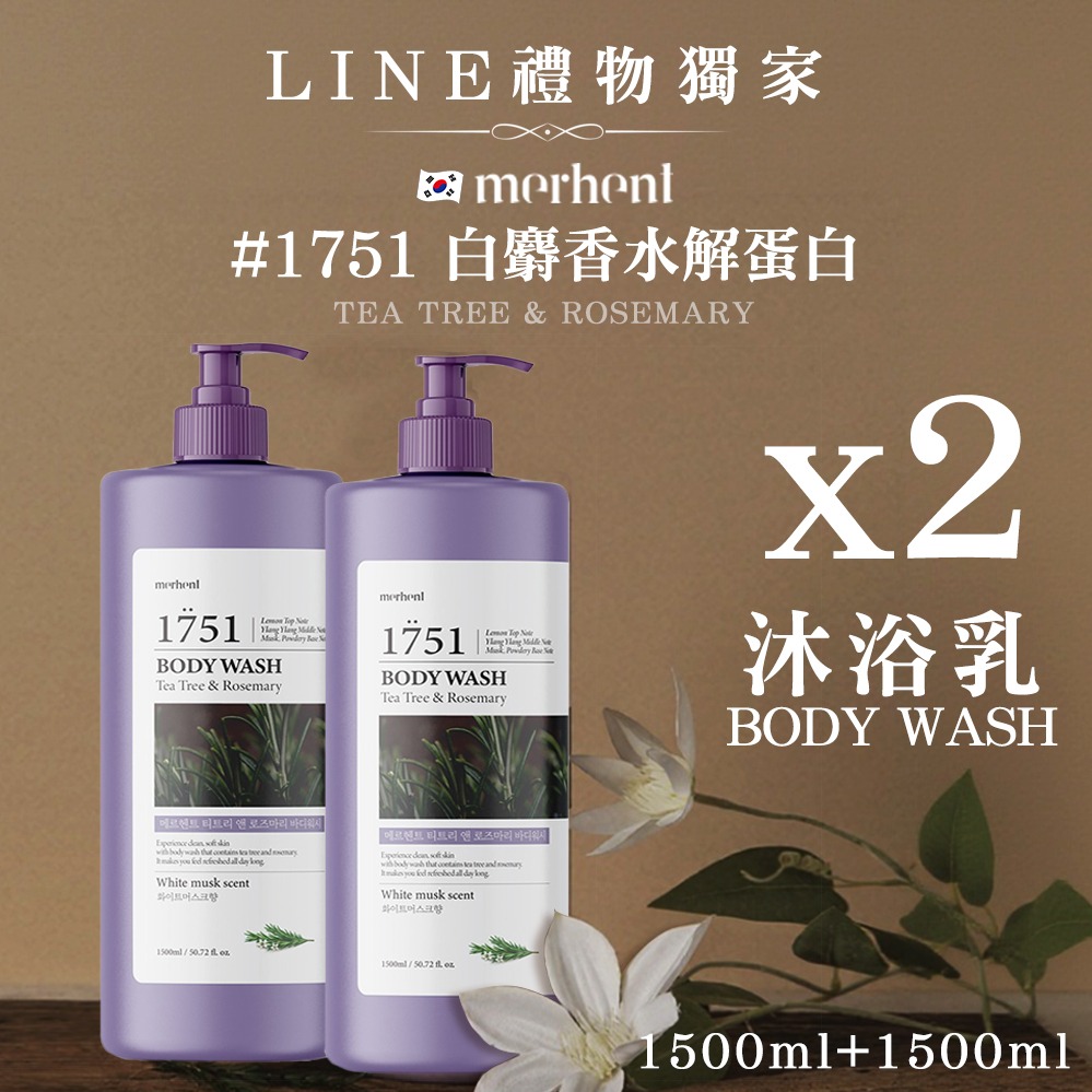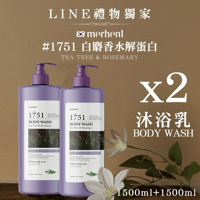 【韓國merhent】韓國merhent水解蛋白8種玻尿酸沐浴乳-1751白麝香1500ml(單瓶) ✨韓國知名熱銷大品牌推薦 大容量芳香沐浴乳