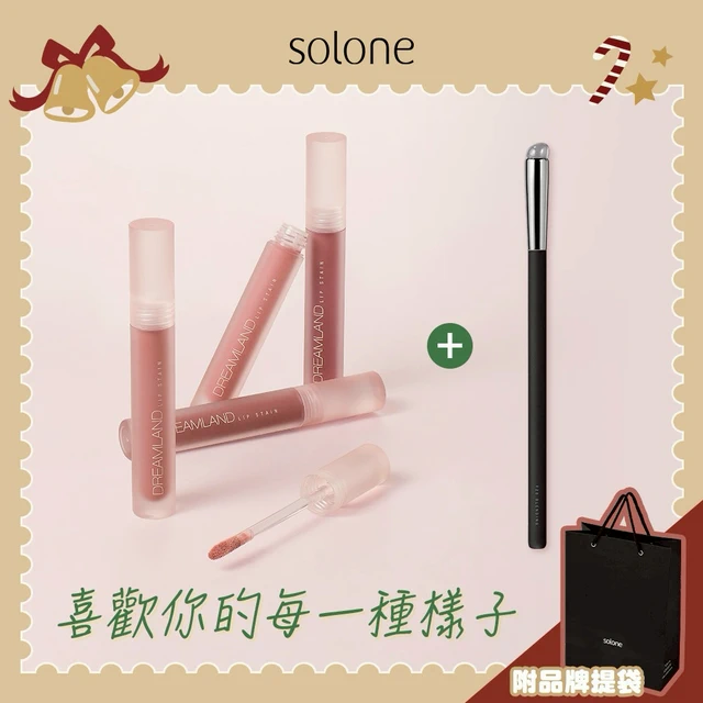 [收禮者自選色號]【Solone】輕透防曬唇韻組☀️柔光幻色唇釉+補水柔焦妝前精華/輕透防曬+心動慕斯手指撲