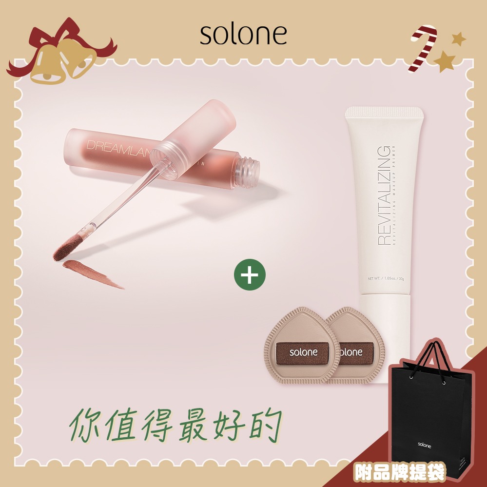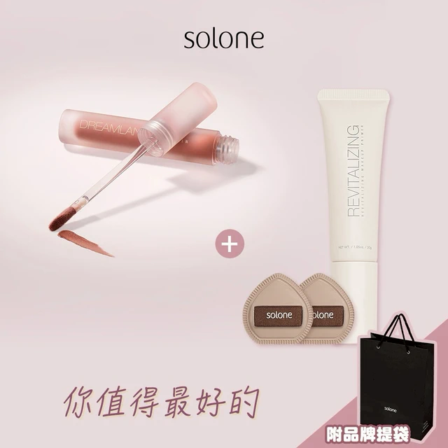 [收禮者自選色號]【Solone】快速完妝組☁️雲朵腮紅膏+亮顏美肌乳+隨身矽膠刷
