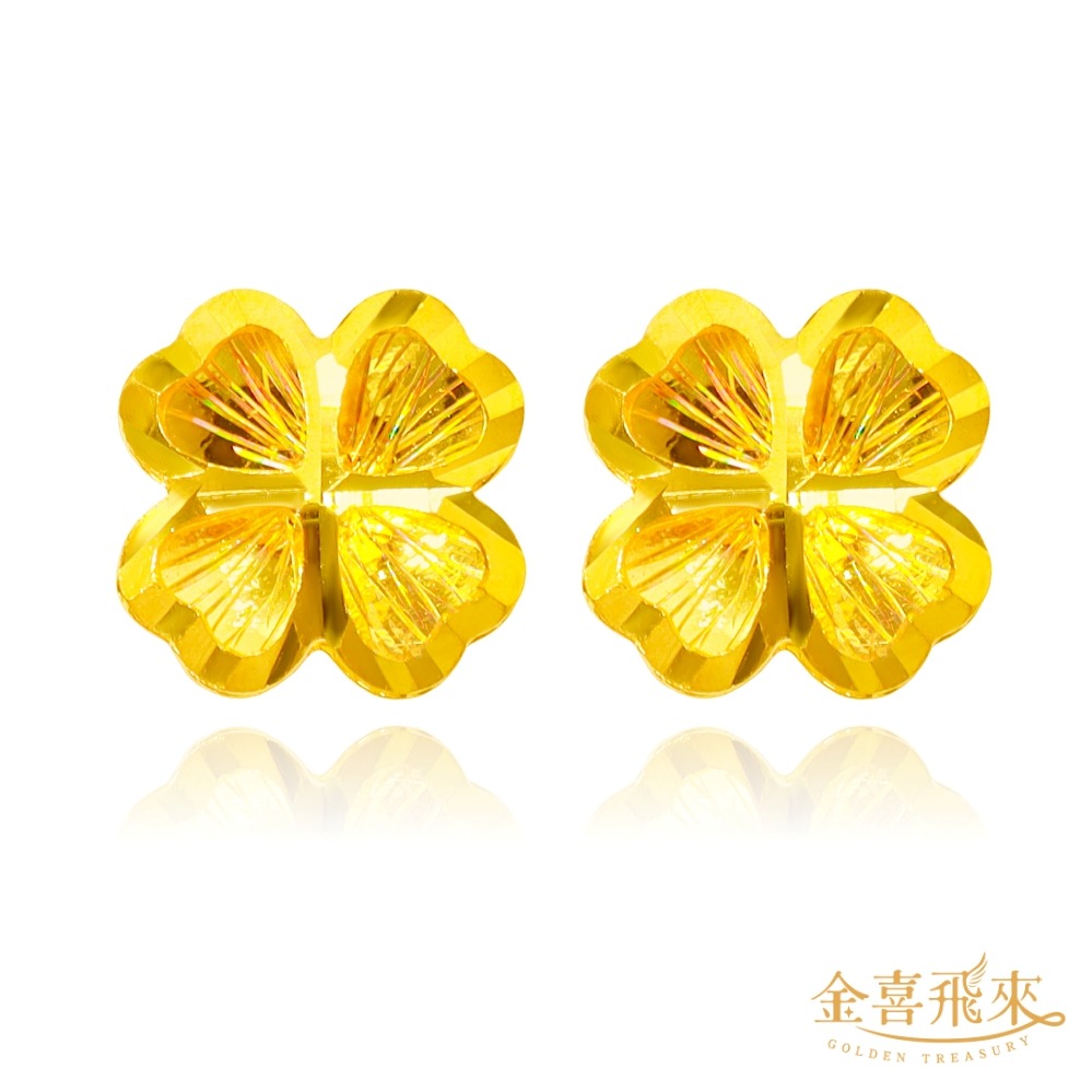 【金喜飛來】黃金耳環閃亮愛心四葉草一對(0.16錢±0.02) 【快速出貨】