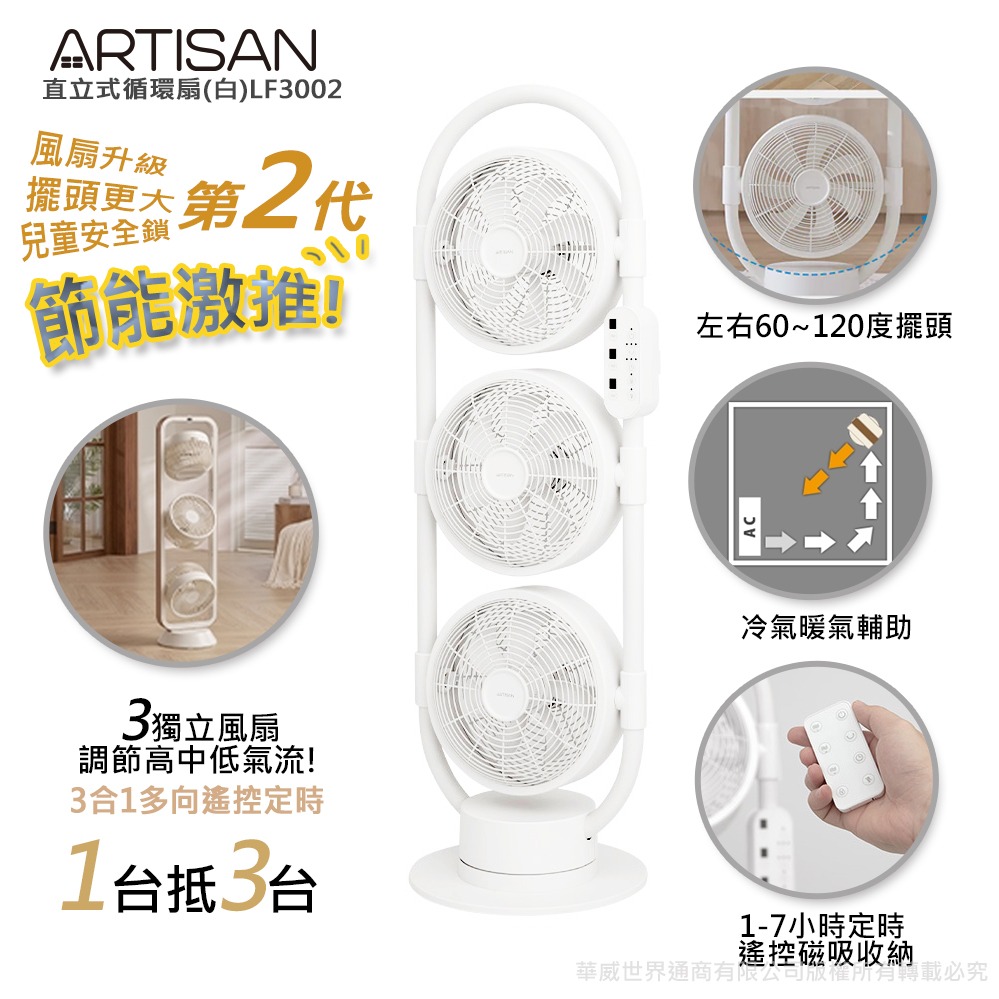 吹出舒適自然風【ARTISAN】12吋DC循環立扇白 LF1201 清涼 涼快 降溫 吹涼涼 空氣循環 清爽 節能風扇