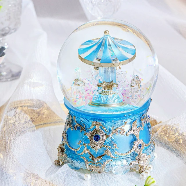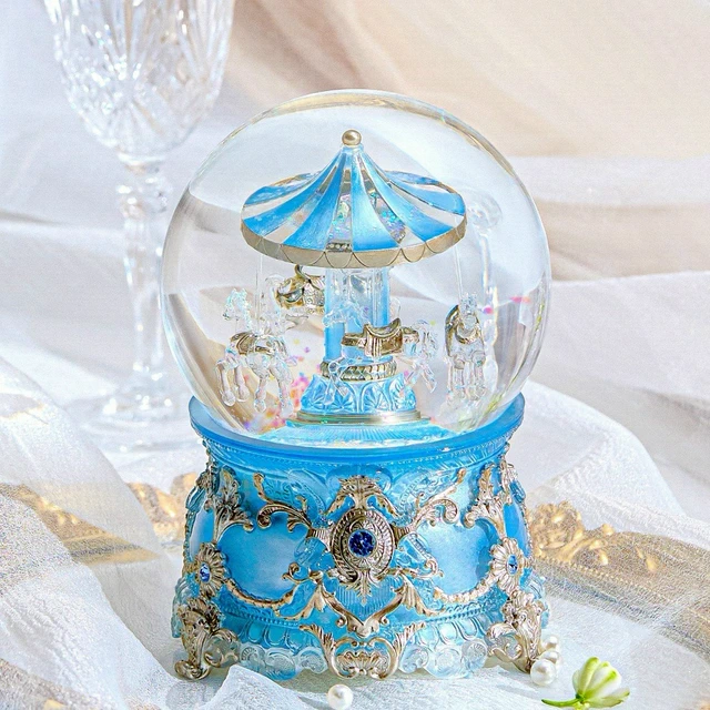 【讚爾JARLL】晨曦粉 琉光旋轉木馬 水晶球音樂盒