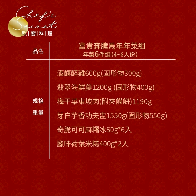現貨年菜【良品開飯】客味賀喜六菜(4~6人份 2026年菜 團圓飯 預購 薑絲大腸 富貴雞 客家鹹豬肉 紅燒牛腩 梅干封肉 )