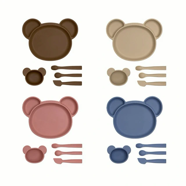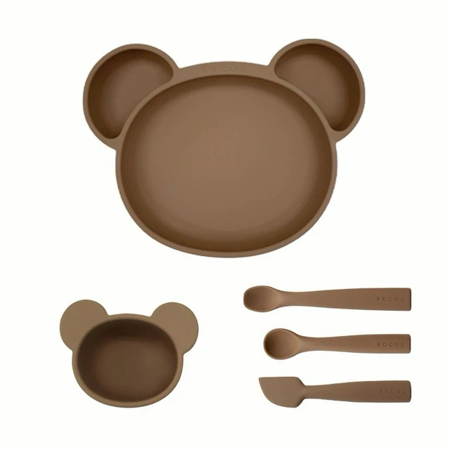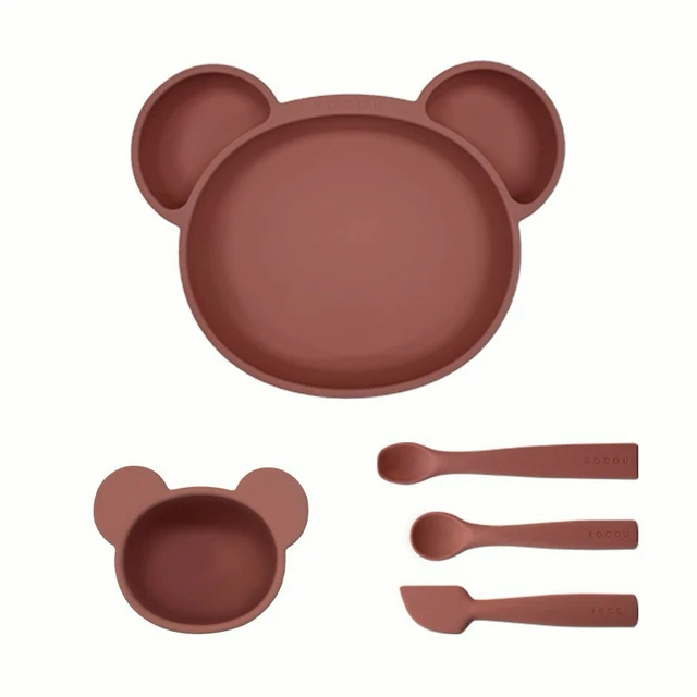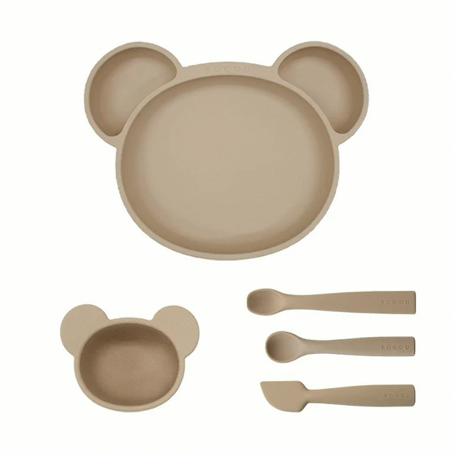 【預購】寶寶餐具組【寶寶市集】寶寶市集 超強吸盤兒童矽膠餐盤/白金矽膠餐盤 寶寶餐具套組9件組 - 米色