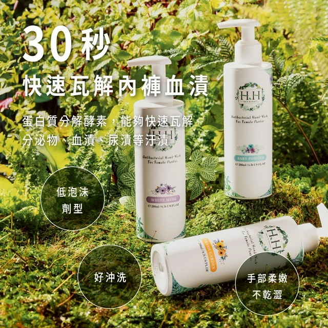貼身衣物乾淨溜溜【HH草本新淨界】LINE禮物獨家 - 女性私密衣物抗菌手洗精200ml+潔淨露旅行瓶30ml+私密濕式衛生紙x2包+品牌訂製厚磅紙袋 閨蜜禮 私密處保養 內衣褲清潔 開啟新生活
