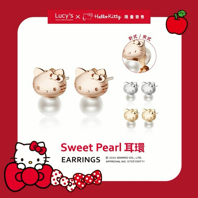 【Lucy's】Hello Kitty 限量聯名 Cutie 愛心針式/夾式耳環 (三色) (125404-125409)