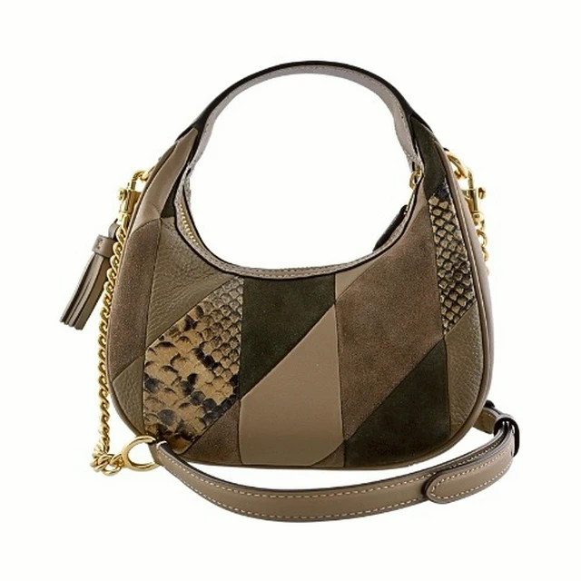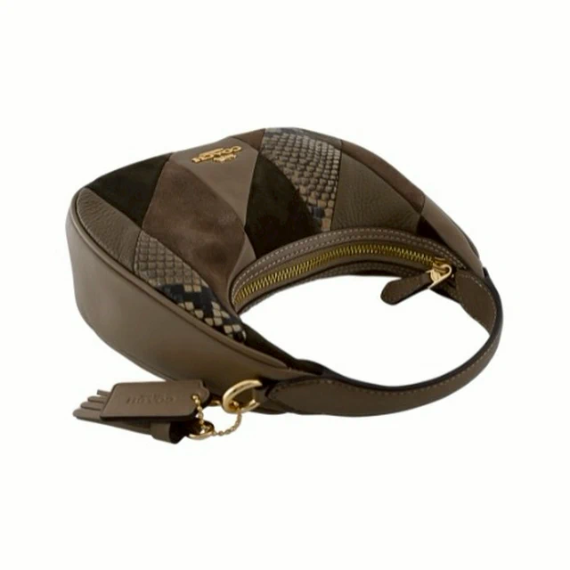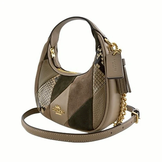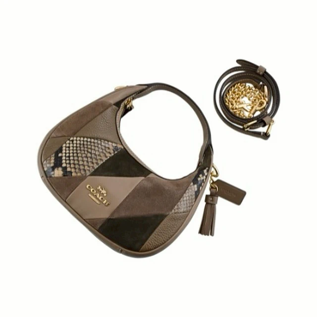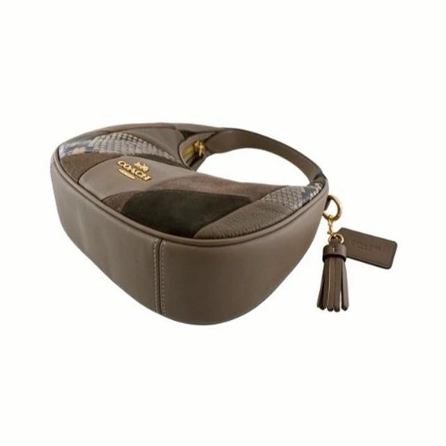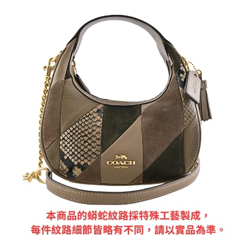 [平輸版] 【COACH】CARME橄欖綠異材質拼接迷你半月包/手提斜背包 真品平輸