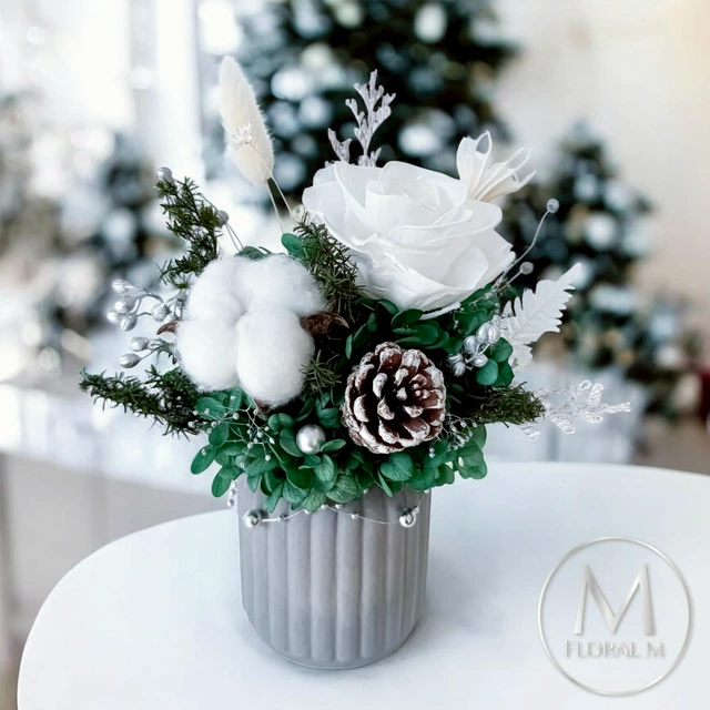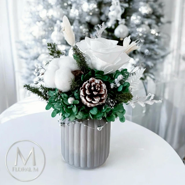 心意藏在花裡🌷【Floral M】Silver Grey 高級灰質感花園永生花禮 射手座生日禮物 開幕喬遷升遷花禮