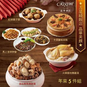 [指定區間出貨]圍爐年菜🍲【台北晶華酒店】年菜5件組(佛跳牆/火烔雞湯/干貝米糕/牛三寶/蜜汁火腿/紅燒獅子頭/吉祥拼盤)(含運)【墊腳石】
